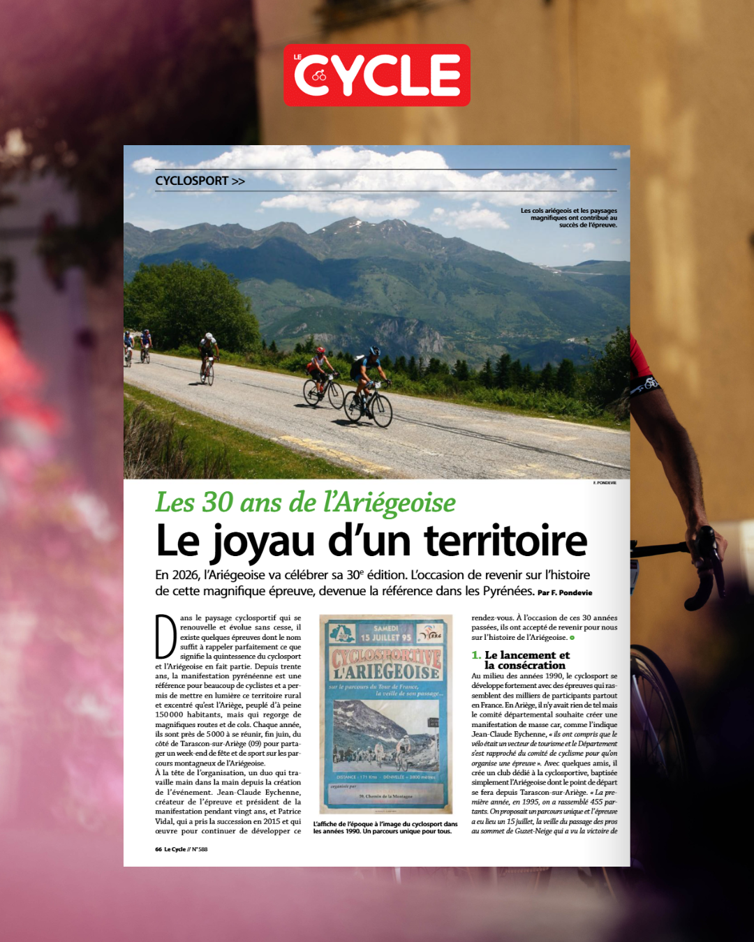 À l’occasion de notre 30e anniversaire, le prestigieux magazine consacre un dossier spécial à ce qu’il appelle « Le joyau d’un territoire ». Une magnifique reconnaissance pour notre épreuve qui, depuis 1995, est devenue la référence cyclosportive des Pyrénées.
